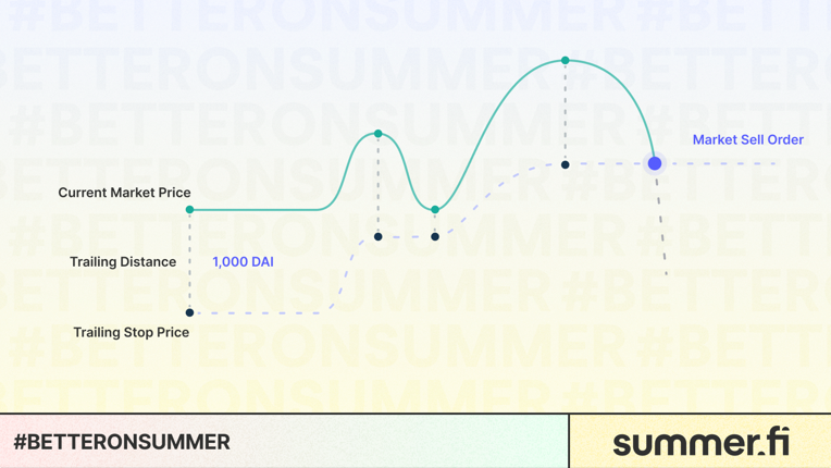 - Trailing Stop Loss protects against sharp price declines: Liquidation is protected against a sudden price drop, and profits are captured if a price drop happens after a significant price rise. https://docs.summer.fi/automation/trailing-stop-loss