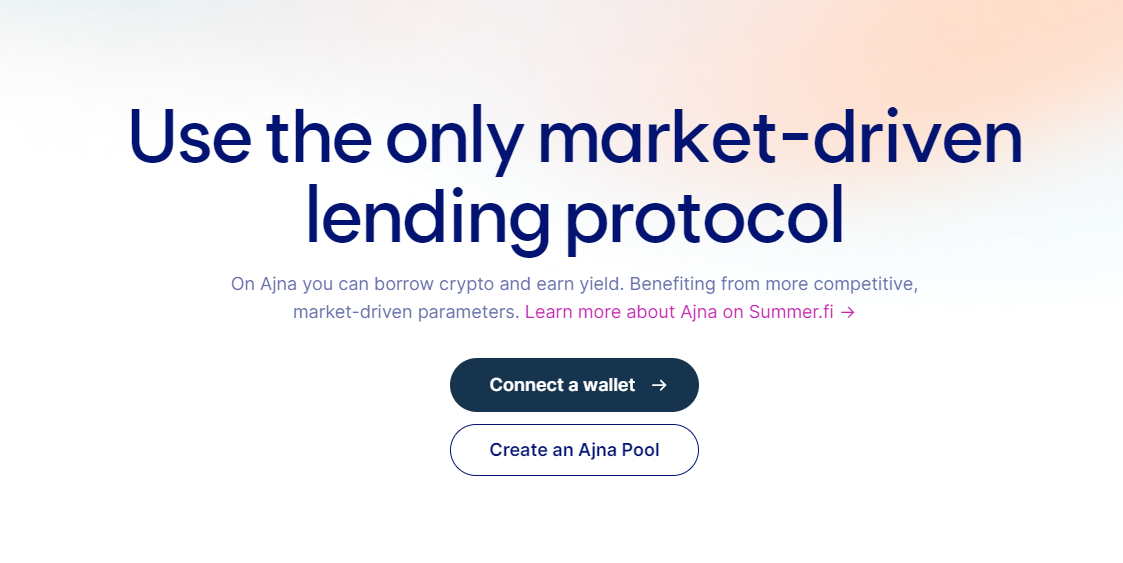 Ajna protocol allows you to create new pools, and participate in liquidation auctions, liquidation bonds, reserve auctions, and grants programs. The Summer.fi integration offers a well-designed user experience and access to select pools and functionalities. Ajna's app provides access to all of the protocol's basic functionality!