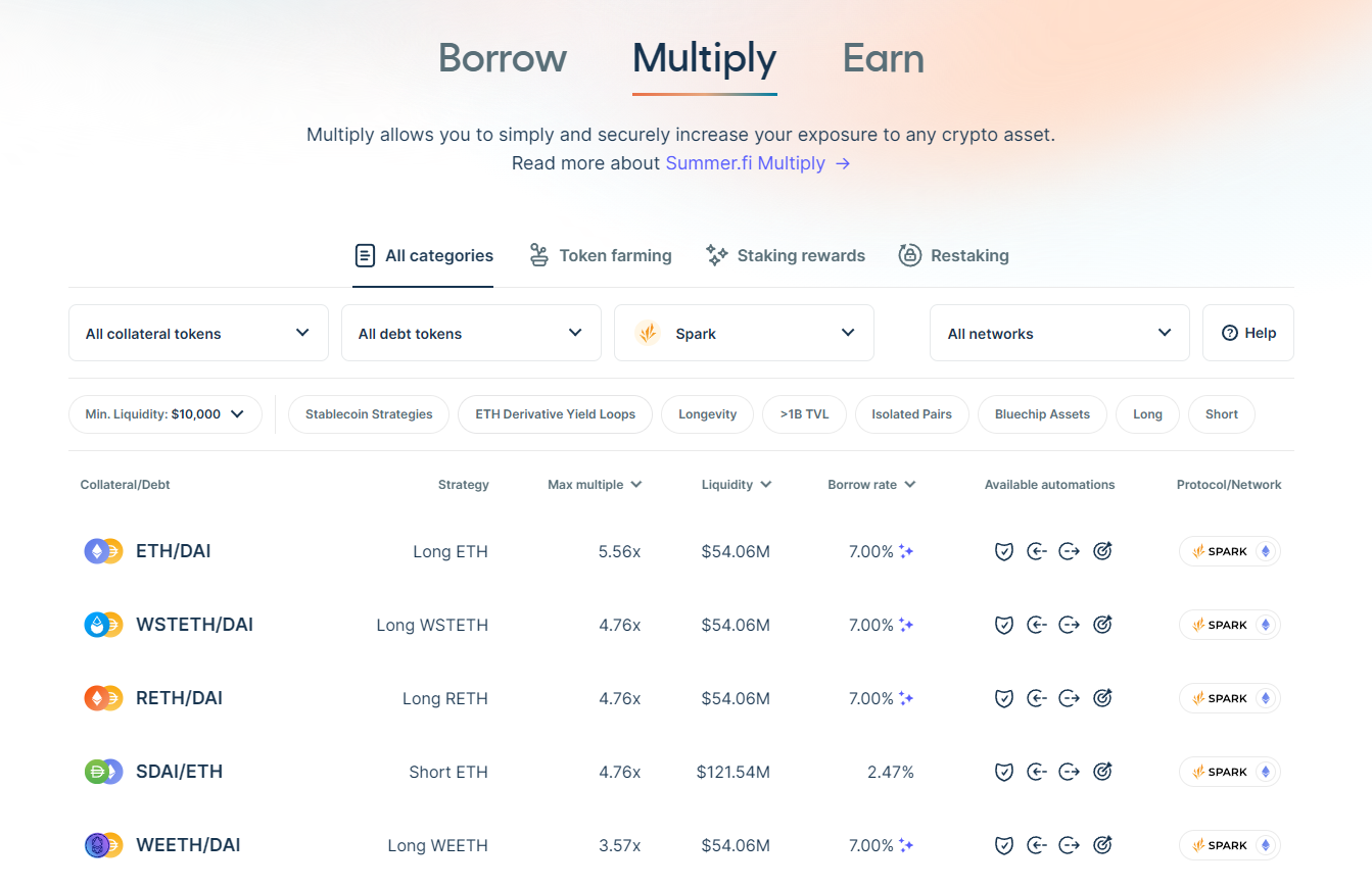 - Explore Auto Strategies: Use Summer.fi’s automated strategies to manage risk and maximize rewards without constant monitoring.
