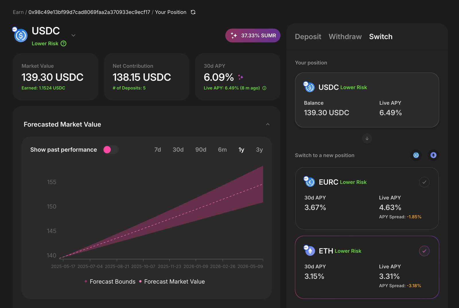 DeFi markets move rapidly, requiring sophisticated positioning strategies for experienced investors. Consider this scenario: You're monitoring a USDC vault position when ETH shows strong momentum $2418. As an experienced DeFi user, you recognize the opportunity to adjust your risk exposure, but traditional repositioning involves multiple transactions, approvals, and gas fees that can delay execution. For sophisticated investors who are familiar with yield optimisation, the new Vault Switch was launched, allowing experienced users to switch between Lazy Summer vaults without leaving the protocol.