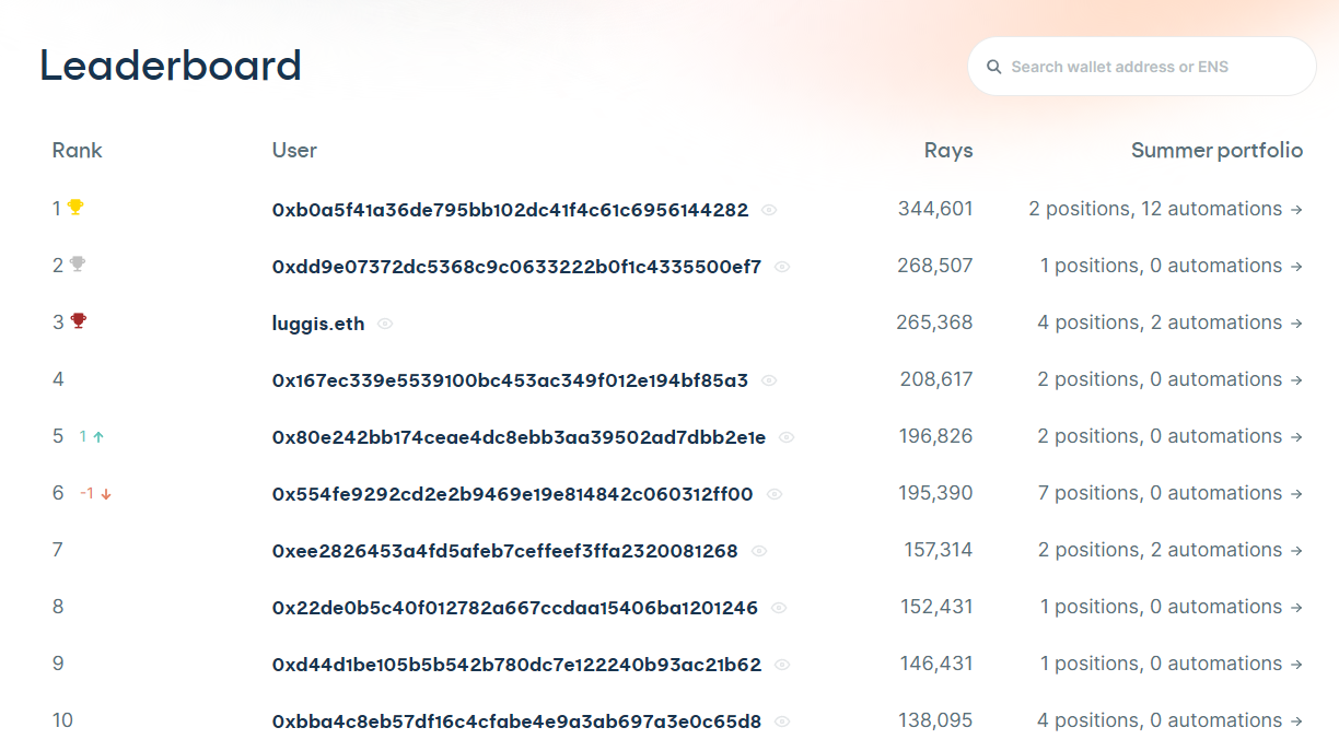 Don’t forget to monitor your $RAYS allocation at Summer.fi/rays and track your progress on the leaderboard at Summer.fi/rays/leaderboard 🏆