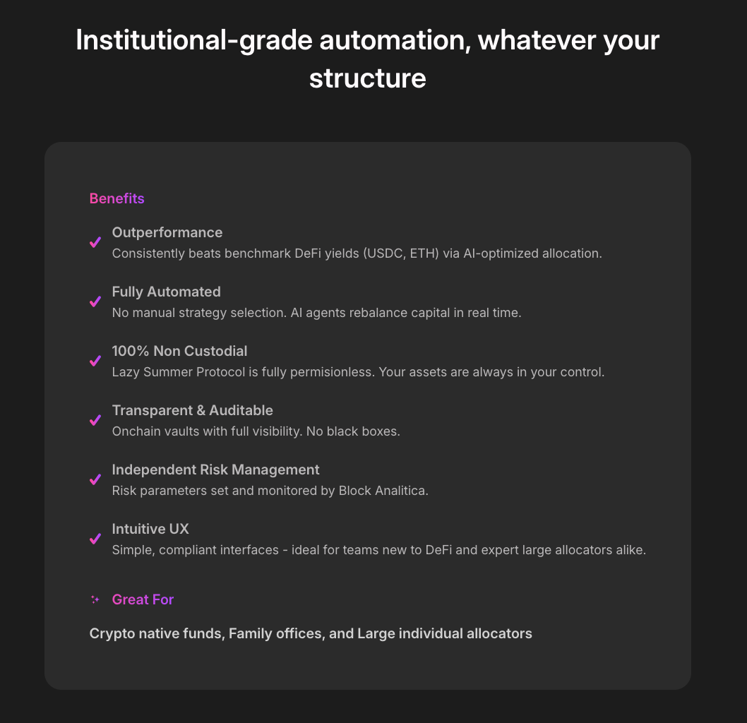With Lazy Summer Protocol + Institutional Vaults: