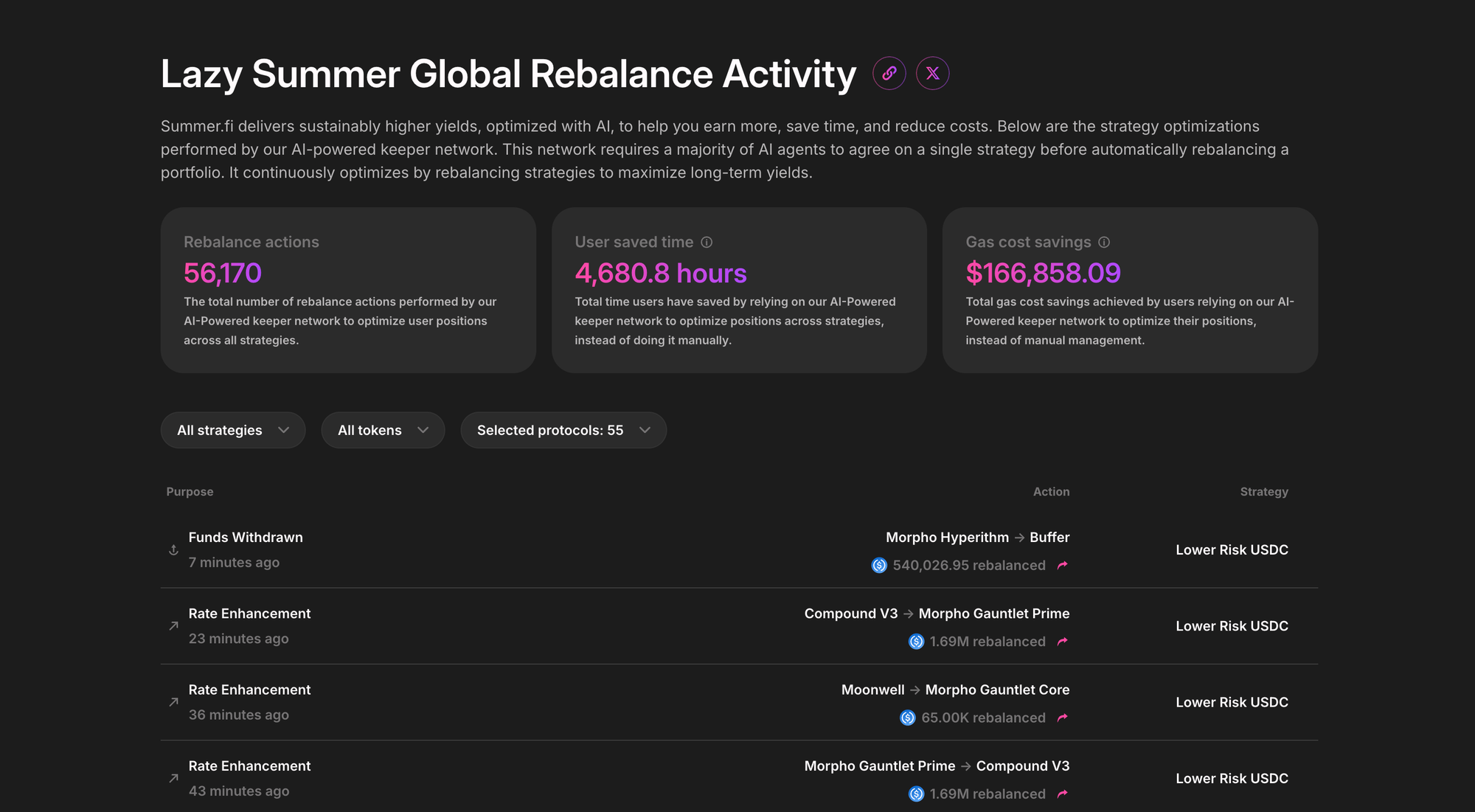 Recently, Lazy Summer added 15 new Morpho Vaults for USDC and ETH, bringing the Morpho Vaults total to 55 different Morpho yield sources on Lazy Summer. All of which can be accessed automatically with one single deposit. No manual management whatsoever.