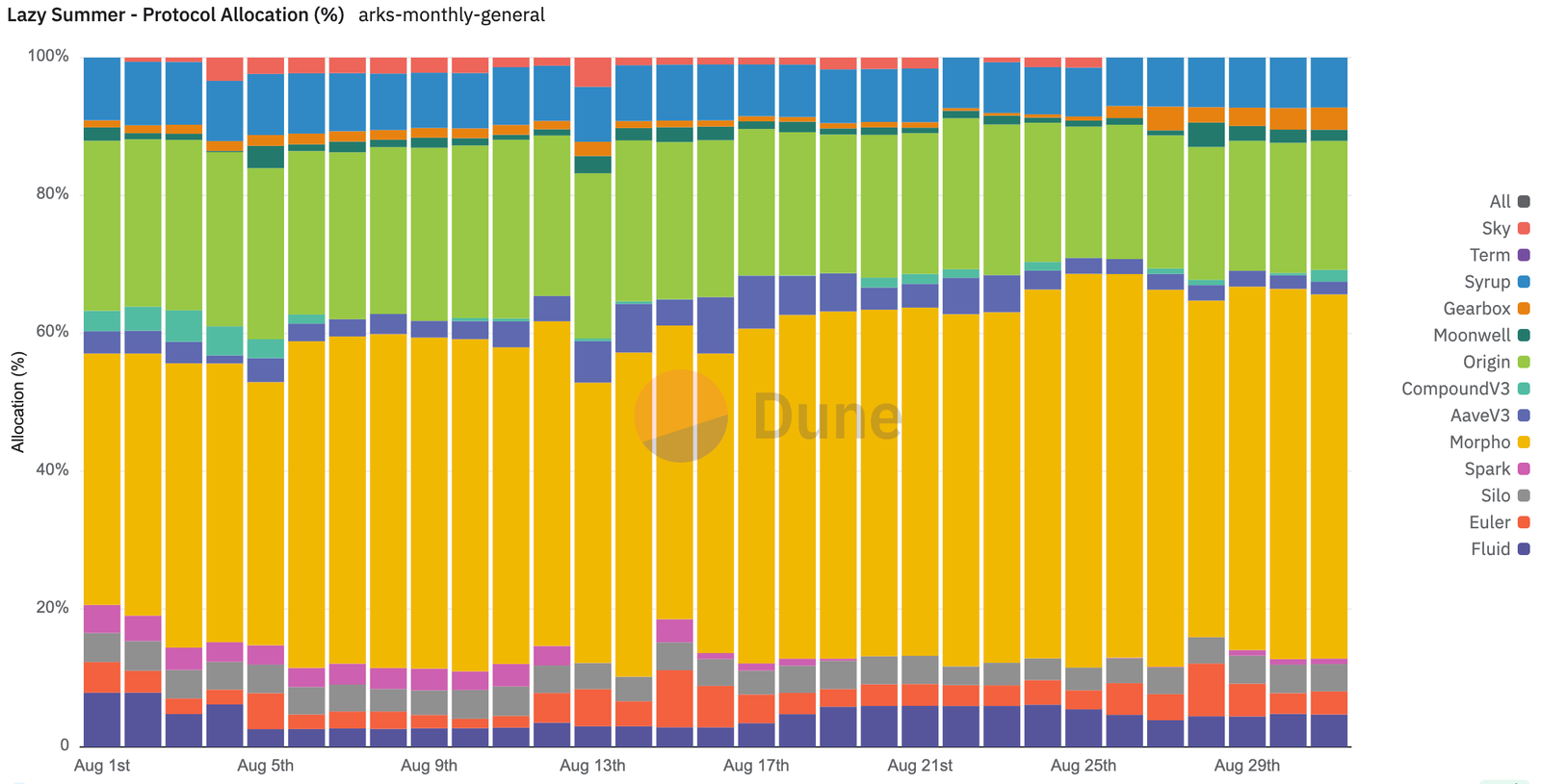 In fact, just last month, Morpho accounted for the majority of yield source generation for the Lazy Summer protocol. Specifically, by the end of August, Morpho accounted for 41% of Lazy Summer’s TVL yield generation across 40 different Morpho Vaults.