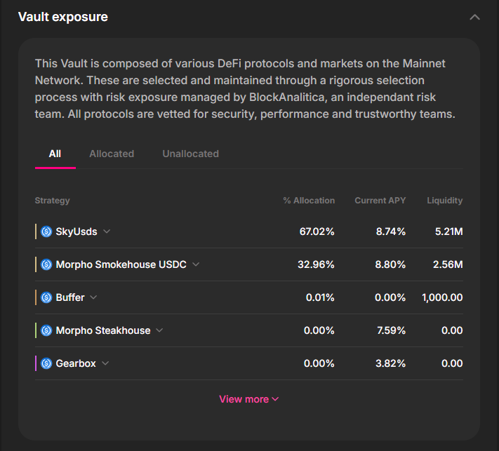 - Curating high-quality protocols: Verified by governance ($SUMR holders) and expert risk managers like Block Analitica.