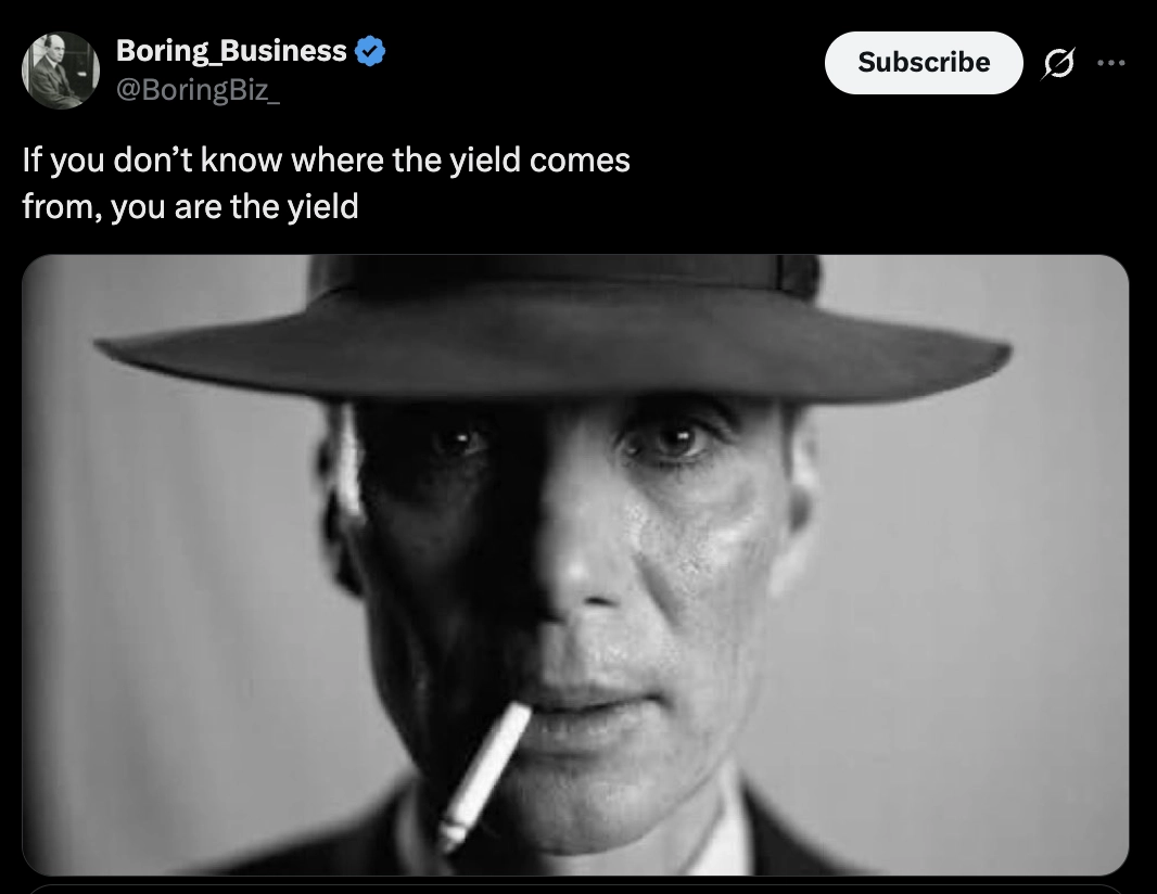 There's a saying in DeFi: if you don't know where the yield comes from, you are the yield.