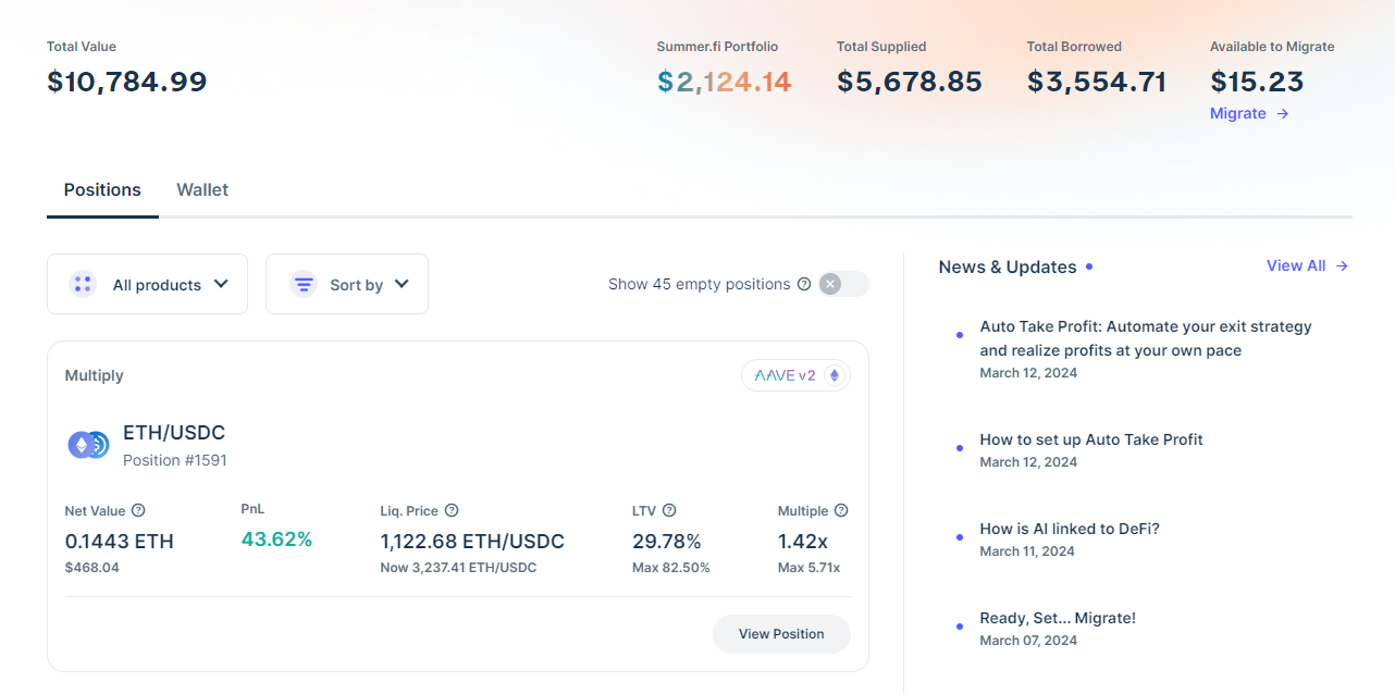 - Updated the ‘Your Positions’ page, to now only show you these positions as Earn positions, but also give you more insight into what you can do with the assets in your wallet on Summer.fi in the new top 5 assets and positions section.