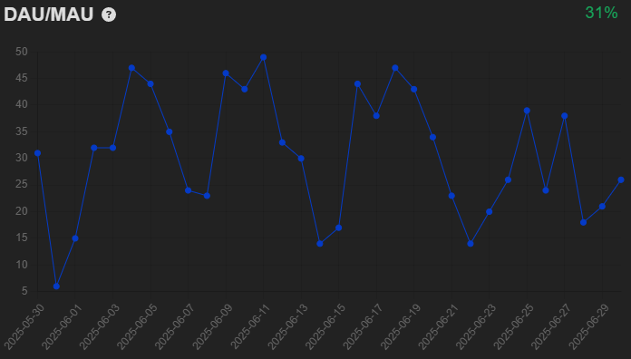 💡 DAU/MAU: Number of members that logged in in the last day divided by number of members that logged in the last month – returns a % which indicates community 'stickiness' (aim for >20%).