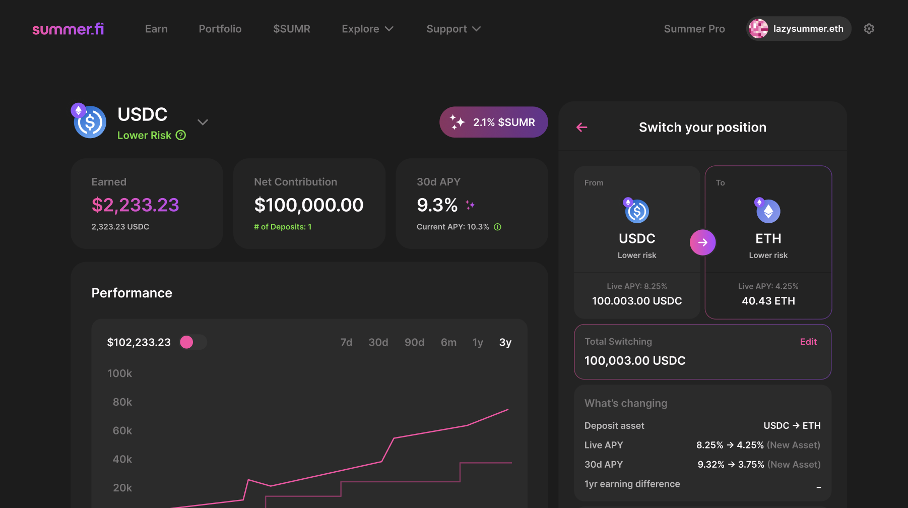 - Optimise & Rebalance powered by AI – Your funds immediately start to get AI optimized yields with the Lazy Summer Rebalancer.