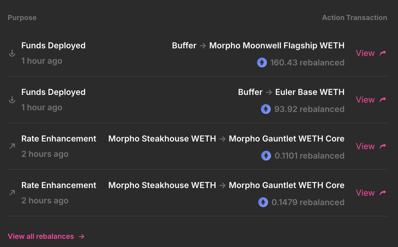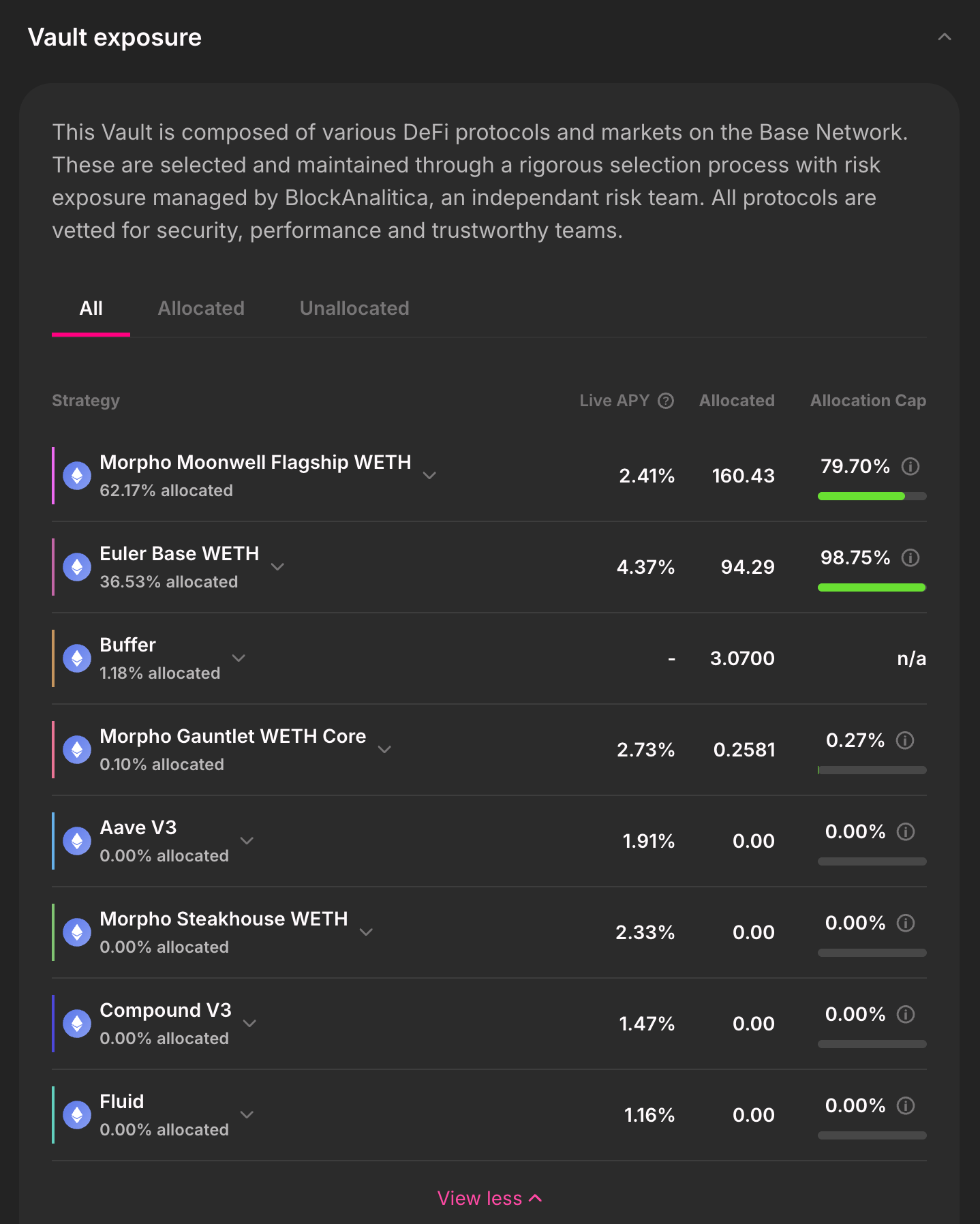 - Higher net yield — always get the best risk adjusted yields on Base for your ETH.