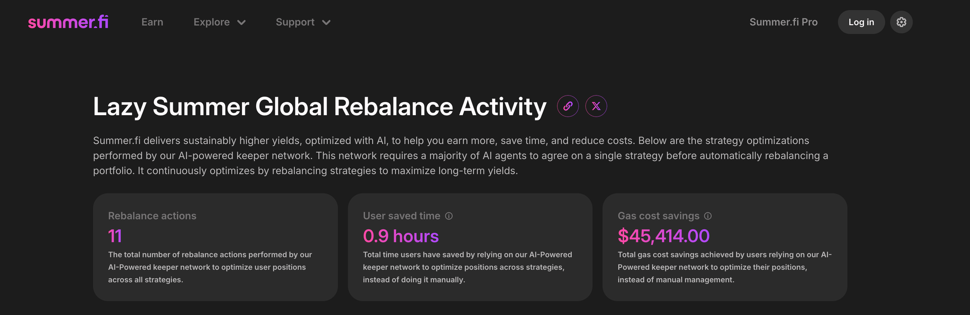 - Zero manual work — Deposit once; AI agents rebalance 24/7, bundling moves into single gas-optimised transactions.
