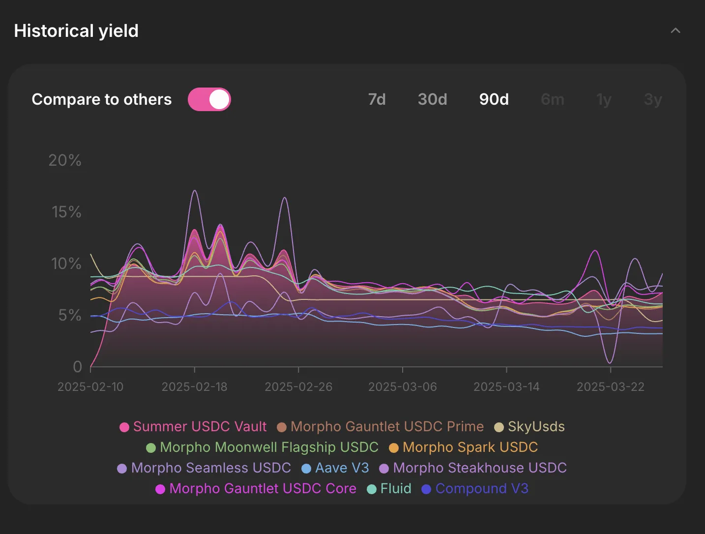 Lazy Summer automatically captures yield fluctuations across the best protocols and strategies. You don’t need to guess or hunt for outperformance—it’s handled for you.