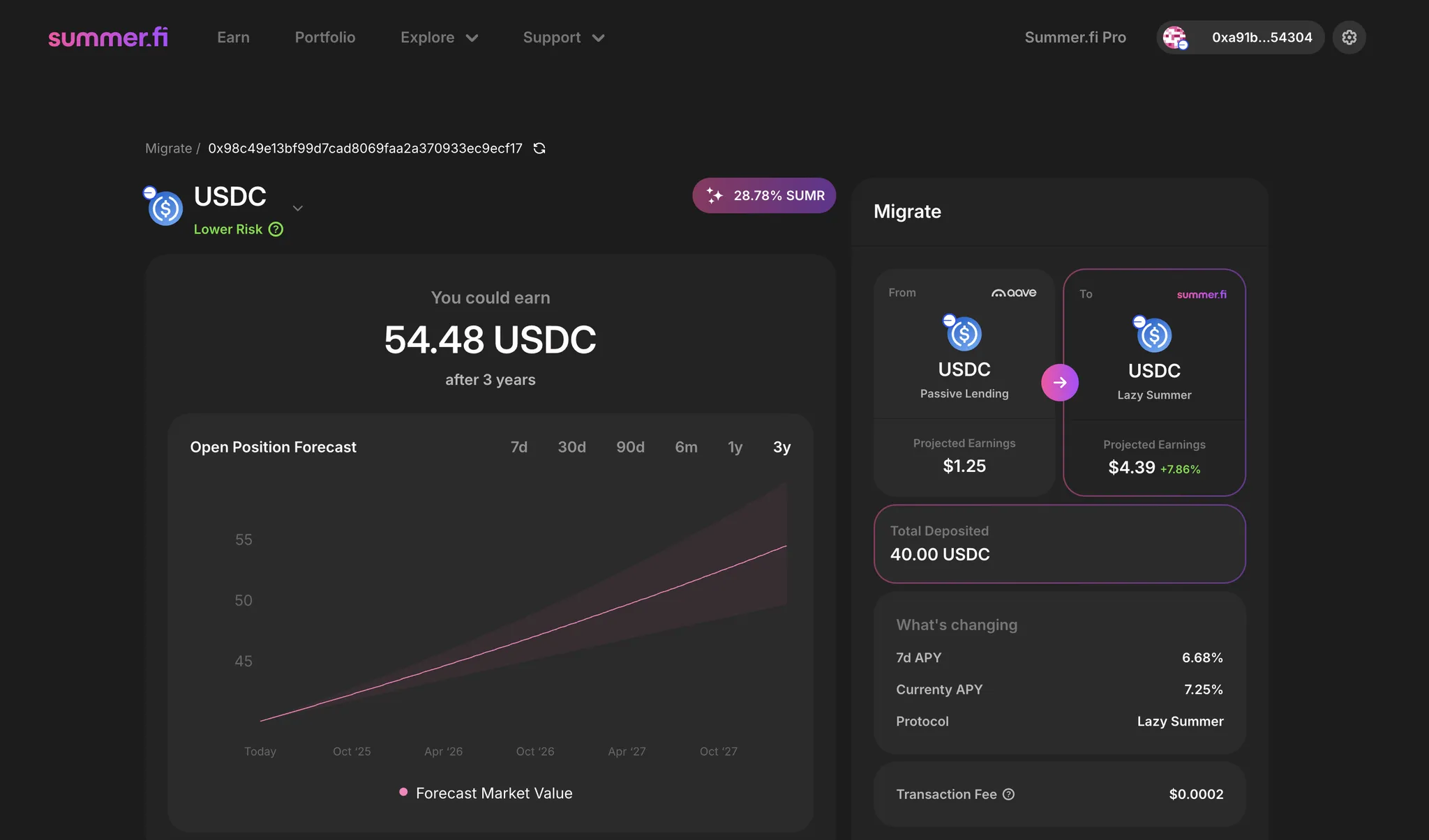 - View and manage your new position on Summer.fi.