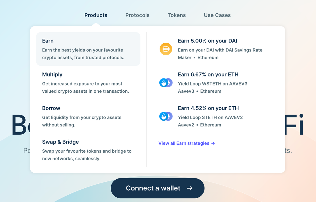 Products: Access the best borrow, multiply and earn products in one click.