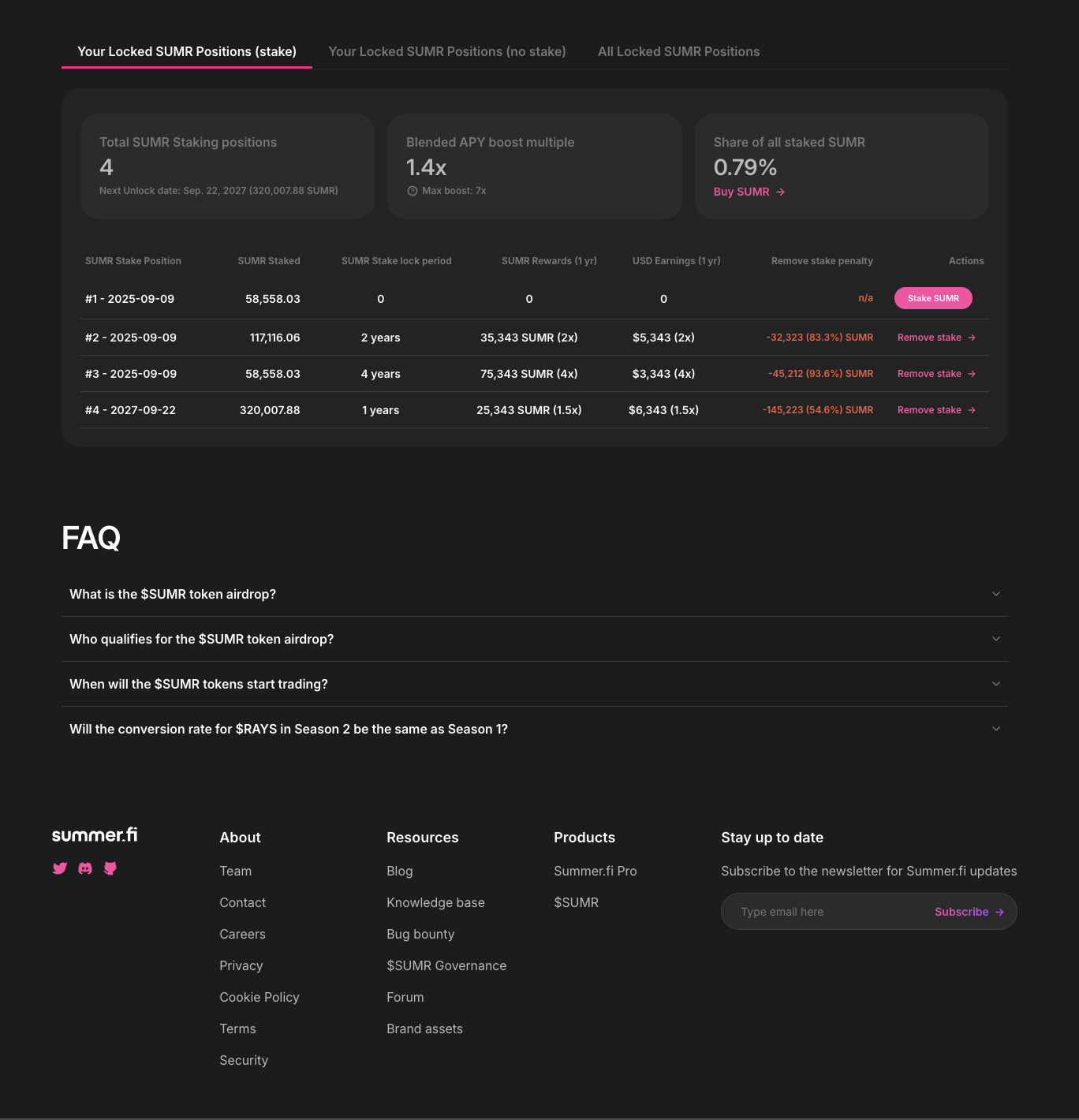 - % of total SUMR supply locked.