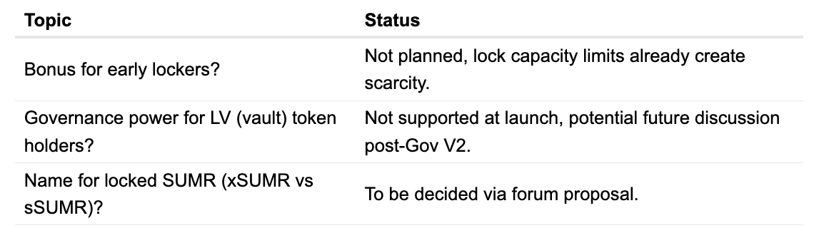 - Full voting and delegation in the new governance system (xSUMR / sSUMR; naming to be finalized on the forum)