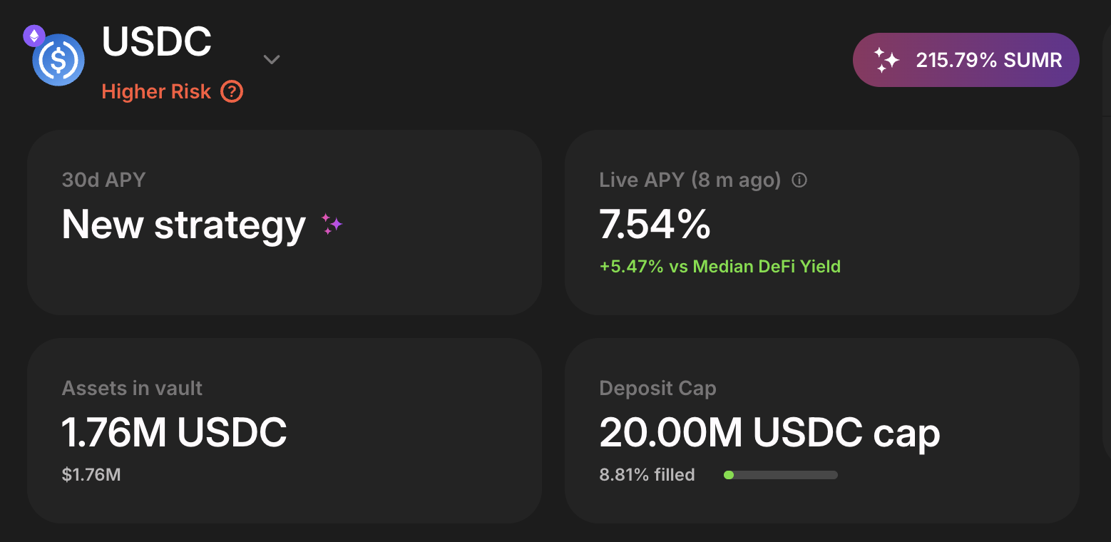 USDC Higher Risk on Lazy Summer gives you automated exposure to DeFi’s higher-yielding, more aggressive strategies—curated from the best protocols by expert risk curators.