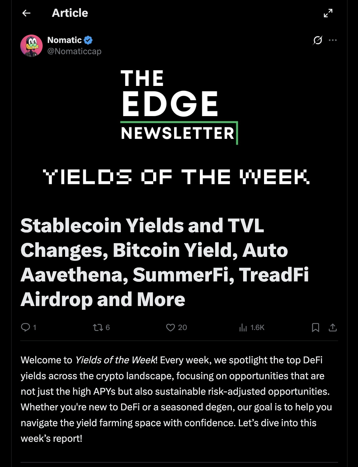 Today, checking yield leaderboards is standard practice, whether through thought leaders like DeFi Dadβs and Nomatic's Yields of the Week or aggregators like Vaults.fyi.
