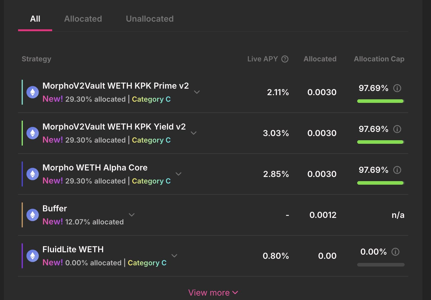From day 1 the highest quality, highest yielding DeFi strategies will be live within DAO Risk-Managed vaults. Today this includes vaults from top tier DeFi yield sources from Morpho, KPK, Steakhouse, Gauntlet, Sky Ecosystem and more. The best part is, that as new yield sources start to perform well, they can be added in less that 1 week.