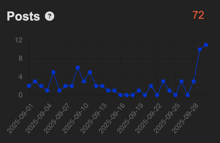 A total of 72 posts were recorded in September showing consistent governance discussions.