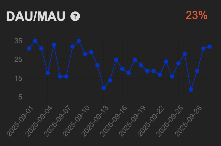 The DAU/MAU ratio averaged 23%, suggesting daily activity dipped, potentially concentrating around governance weekly cycles.