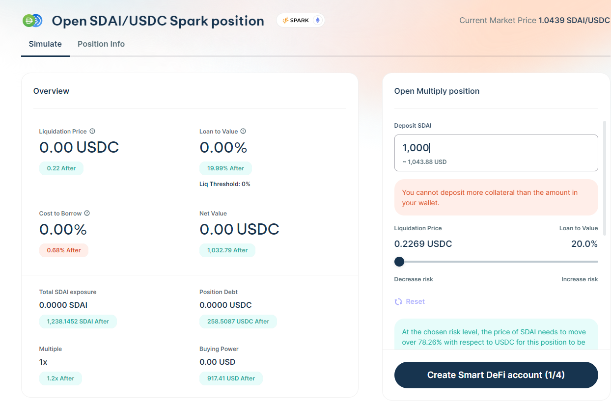 Summer.fi's integration with Spark Protocol includes an expanded range of token pairs, significantly enhancing your current options. You can Deposit & Borrow in one click, Multiply your exposure to a single asset, or just lay back and relax while you Earn.