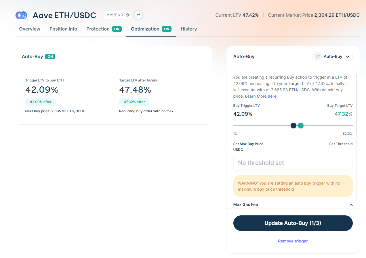 - Configure Auto-Buy from 45% LTV to 50% LTV.