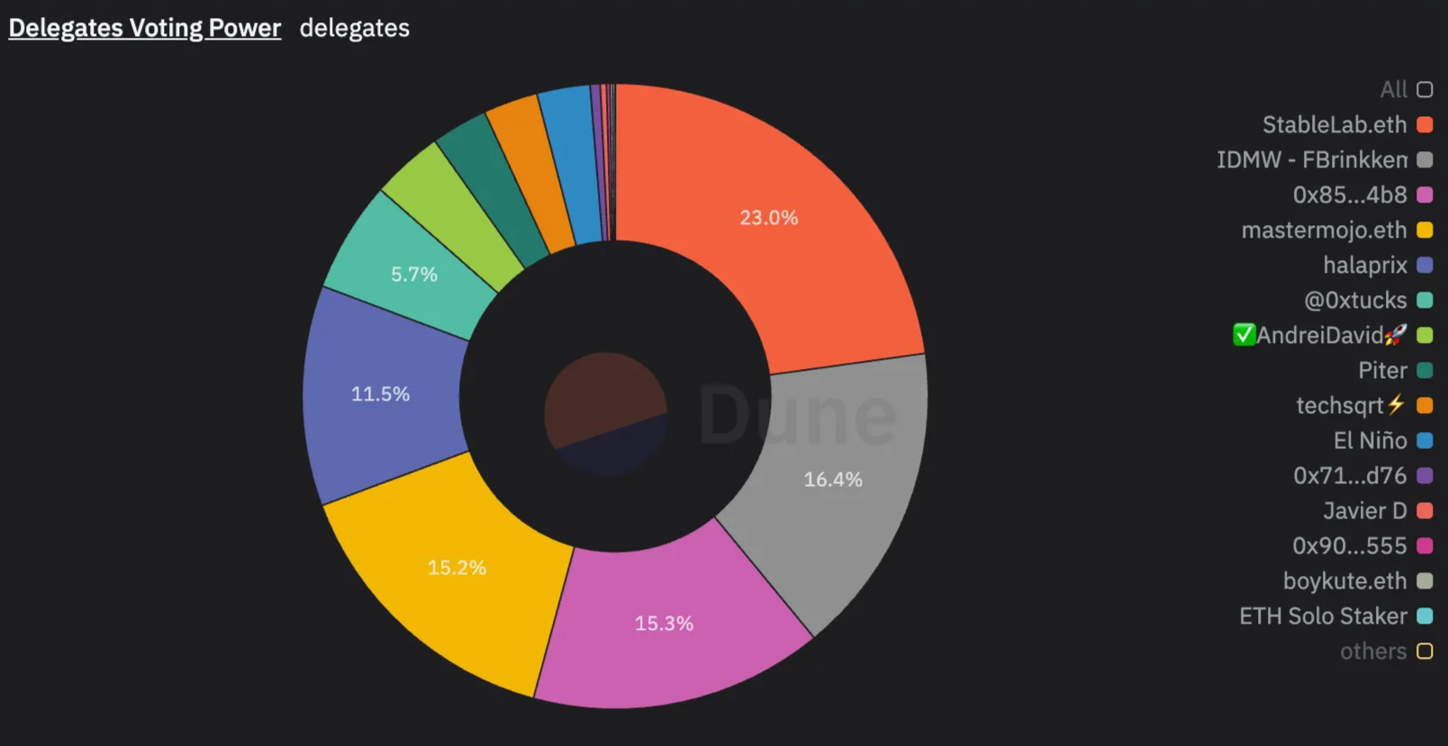 *If you are delegating your tokens, make sure to keep an eye out on the performance of individual delegates. The size of voting power should not be your only decision maker. Look at the activity of individual delegates on the forum, their voting participation via the dune dashboard, and delegate accordingly.