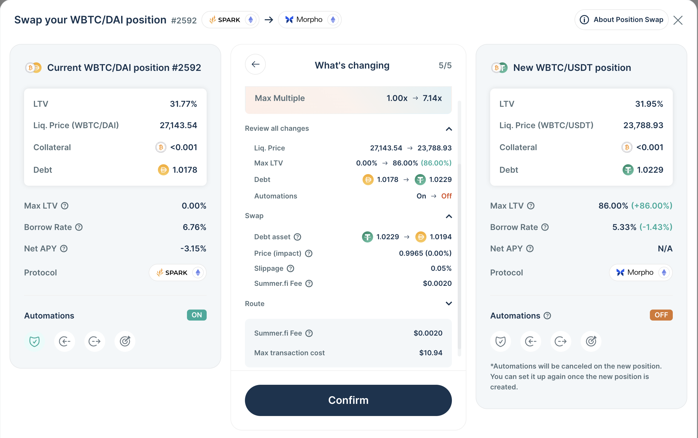 More info on Position Swap: https://blog.summer.fi/swap-your-position-within-supported-summer-fi-protocols/