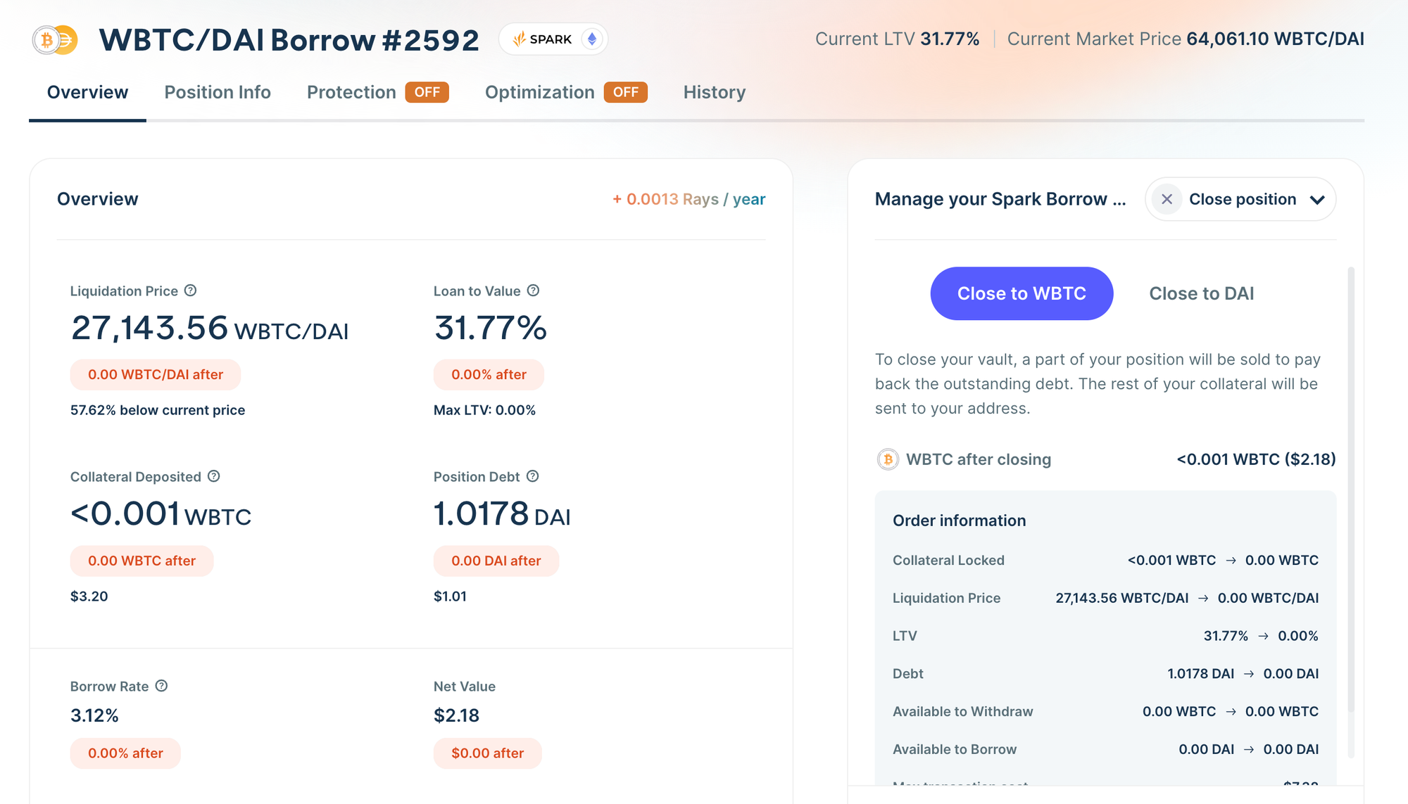 Current wBTC positions can be kept open, but no new debt can be generated on Maker and Spark using wBTC as collateral. In this executive vote the Stability Fee for wBTC vaults has been also reduced to: