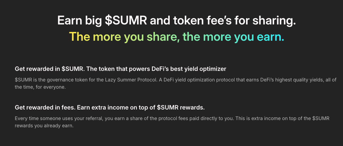 You win by earning $SUMR rewards and protocol fee shares for every friend who deposits through your referral code. Your friends win by accessing automated, AI-powered yield strategies that consistently outperform DeFi benchmarks without the complexity of manual optimization.
