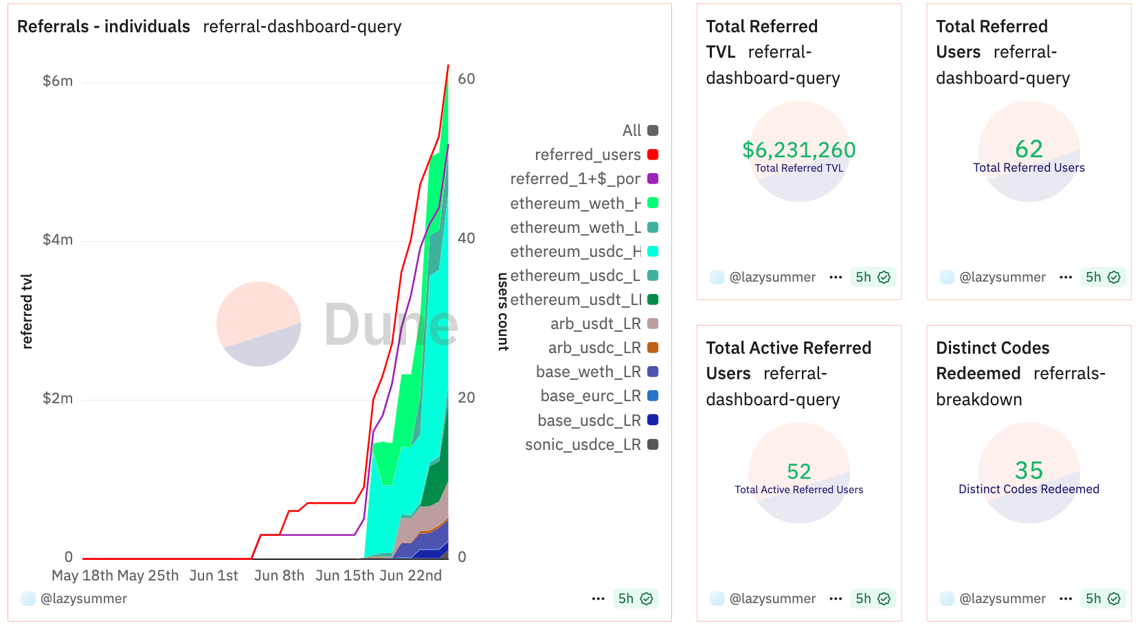 The data shows 16 distinct referral codes being actively used, proving the program's accessibility. Top referrers aren't just maximizing their own rewards they're building genuine value for their networks by introducing friends to superior DeFi infrastructure.